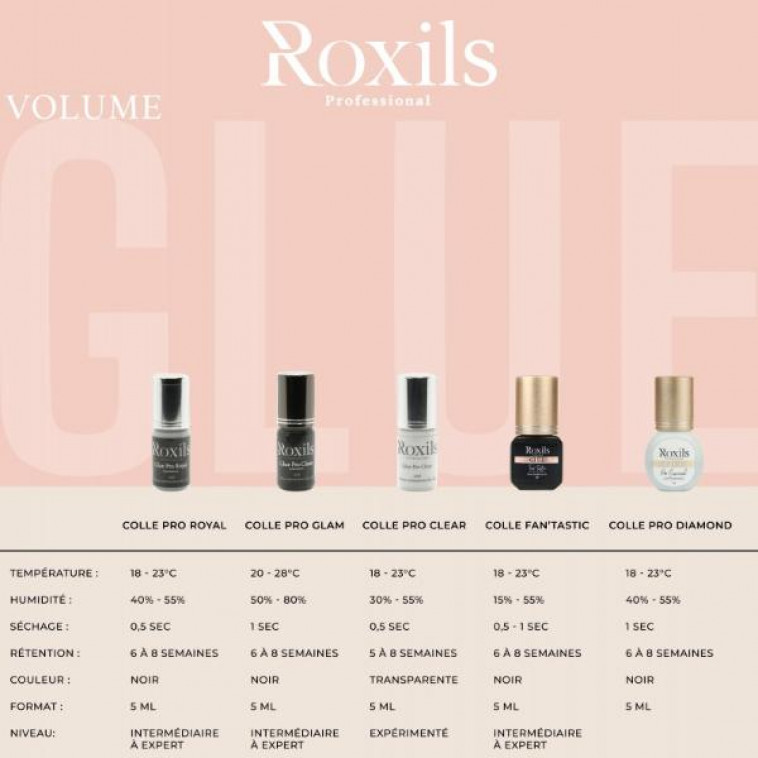 COLLE PRO ROYALAdapte pour le volume et extension de cilsTexture moyenneUltra noirSéchage: 0,5 sechumidité: 40% a 55%Tenue 6 à 8 semaines5gr