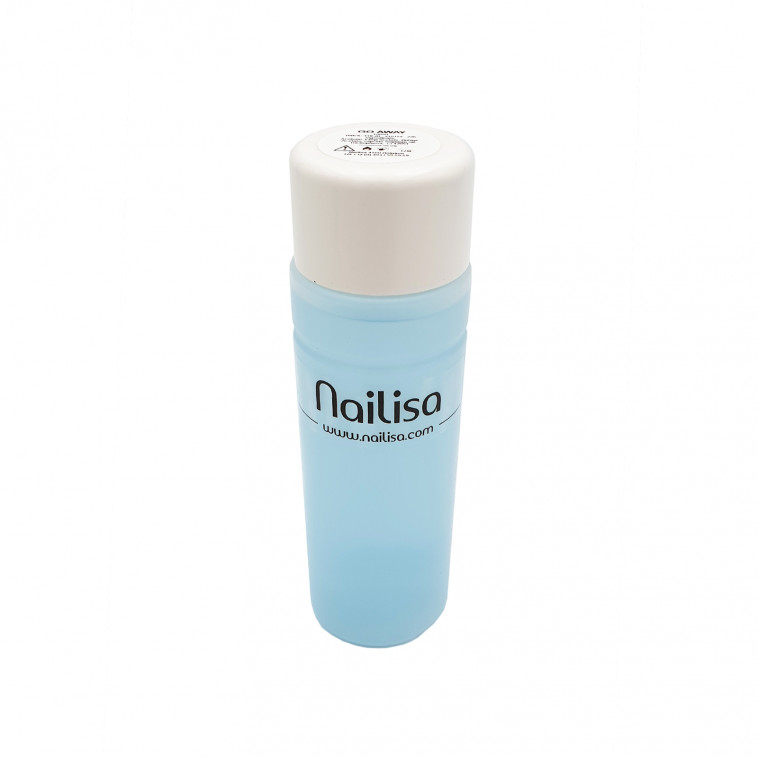 Solvant spécial destiné à enlever nos vernis semi-permanents (ou Soak-Off Gels).Méthode : Griffer légèrement par ponçage à la lime puis au bloc l’ongle vernis.Imbiber un coton de Go Away, le placer sur l’ongle naturel vernis et entourer le doigt et le coton imbibé de papier aluminium.Procéder de la sorte pour tous les doigts et laisser agir environ 10 minutes.Détacher la pellicule de vernis par de légers mouvements à l’aide d’un bâtonnet de buis ou d’un repousse-cuticules.