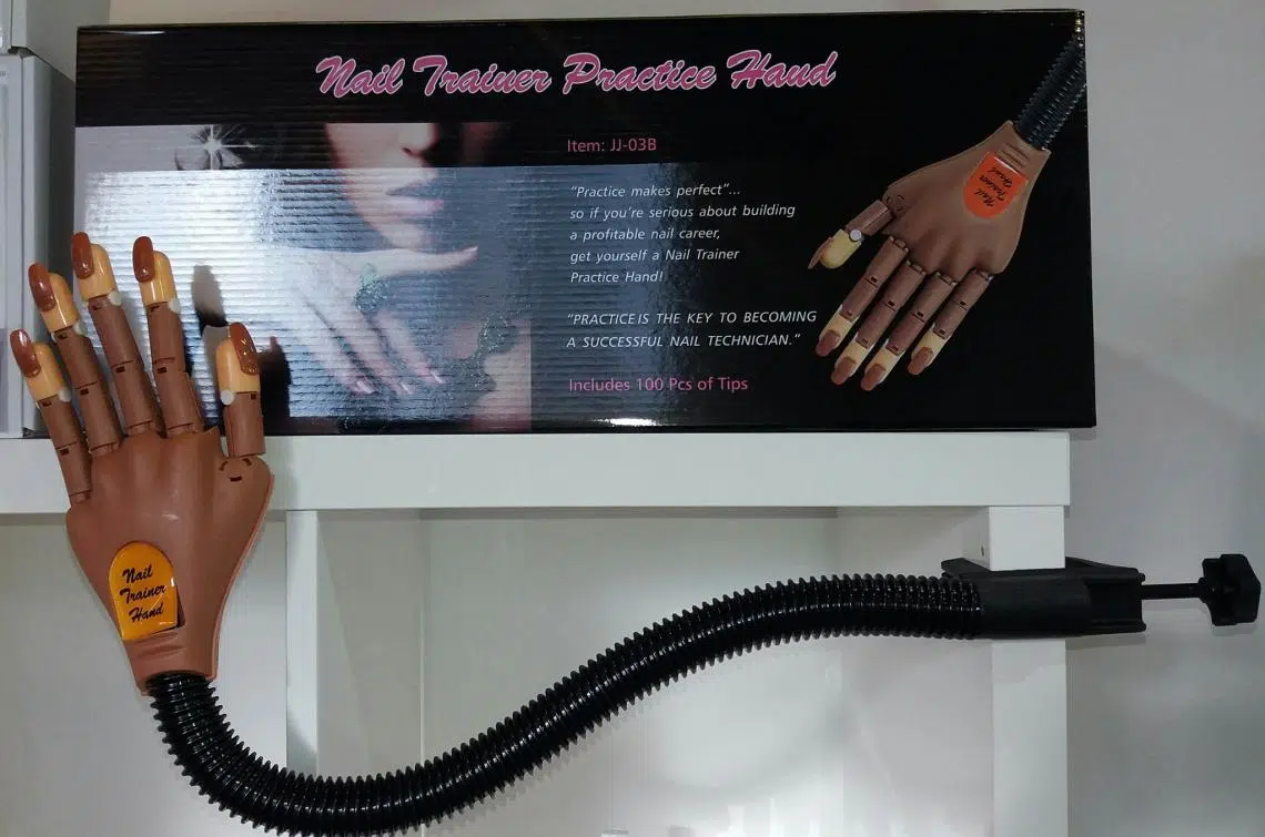 Main d’exercices articulée fournie avec 100 tips d’entraînement. Extrémité des doigts en caoutchouc.