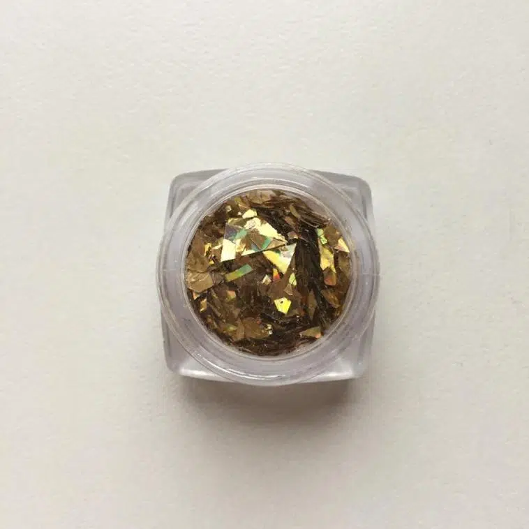 Paper Flakes Dorées à déposer sur le résidus collant. Pour des décorations originales aux légers reflets néons!