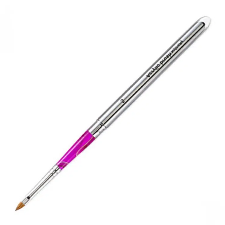 Magnifique pinceau Kolinsky avec étui en métal, idéal pour les personnes faisant du domicile ou aimant un pinceau alliant design et côté pratique. Avec ses poils de taille n°3, il est idéal pour poser le gel pour dessiner la pointe de la French Manucure.