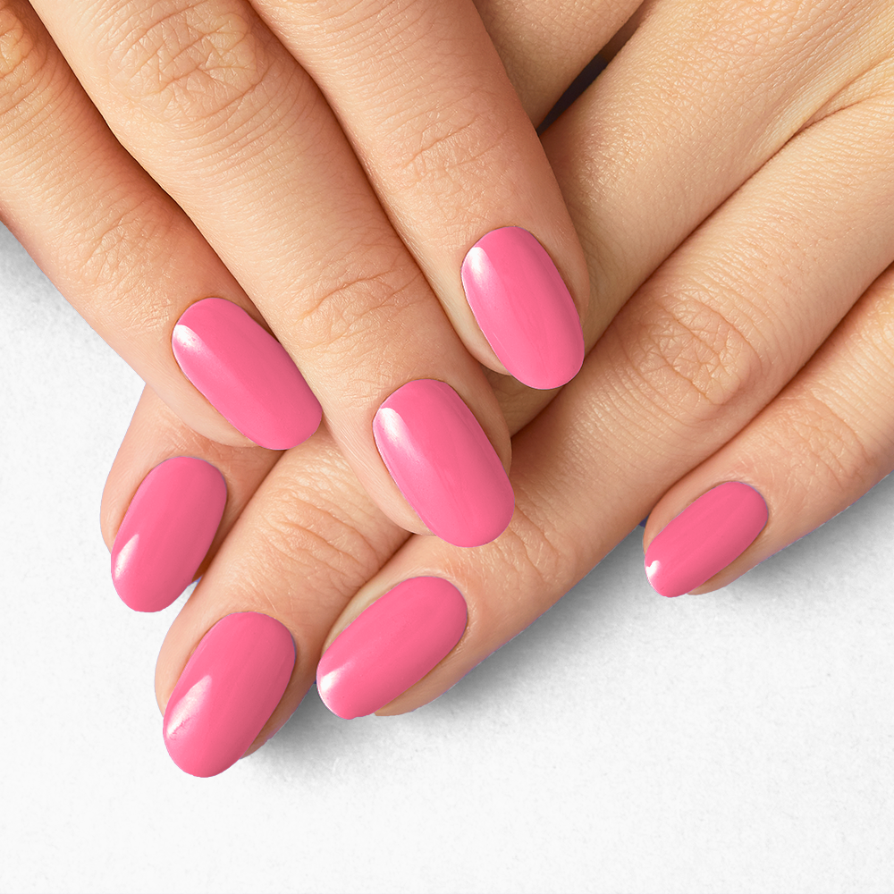 Le vernis semi permanent Angelina Jo de NAILISA, en référence à l’actrice iconique, est un rose vif frais et pétillant.
