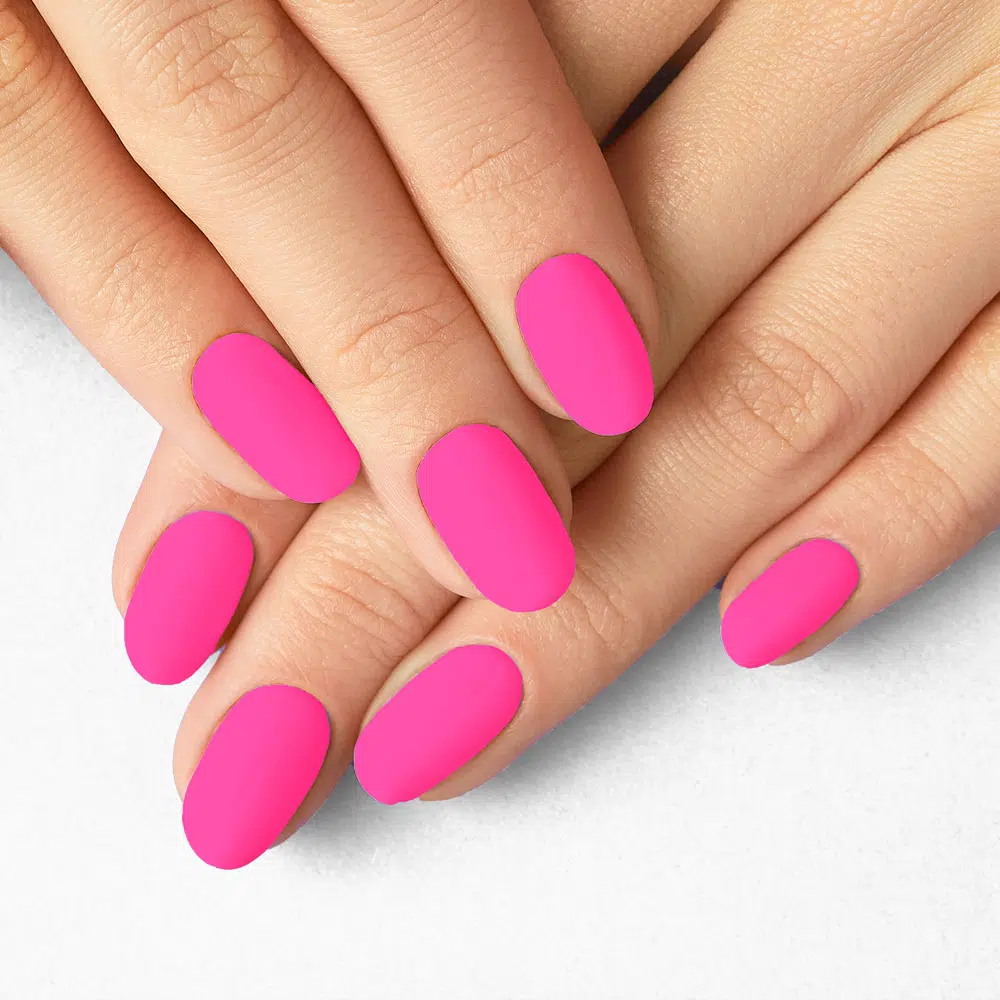 - Appliquez ensuite, doigt par doigt, une à deux couches fines de vernis semi-permanent coloré et catalysez chaque couche 2 minutes sous une lampe 36 watts ou de 30 à 60 secondes sous UV/LED. Vous pouvez légèrement border le devant de l’ongle au moins une fois pour « fermer » votre couleur et éviter tout soulèvement.