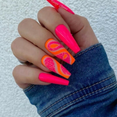 La manucure fluo fait de nombreux adeptes et trouve un allié de charme dans cet extraordinaire vernis semi permanent rose néon, vibrant et lumineux qu’est le Bikini party de NAILISA.