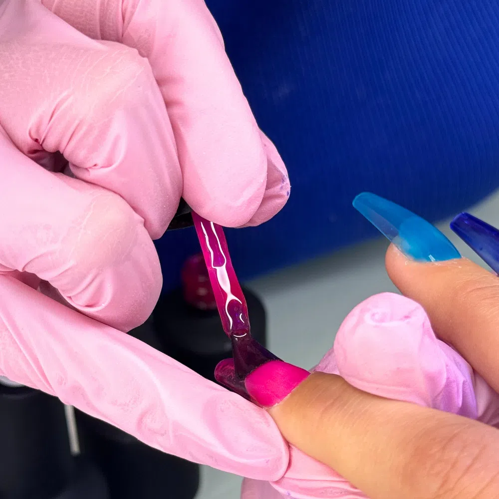 Toujours travailler en couches fines et faire catalyser chaque doigt, au moins 15 secondes avant de passer au suivant et au final, 1 min. sous lampe UV 36 watts et au moins 30 à 60 secondes sous lampe UV/LED. Pour un résultat optimal nous vous conseillons de ne pas mélanger des produits de marques différentes.